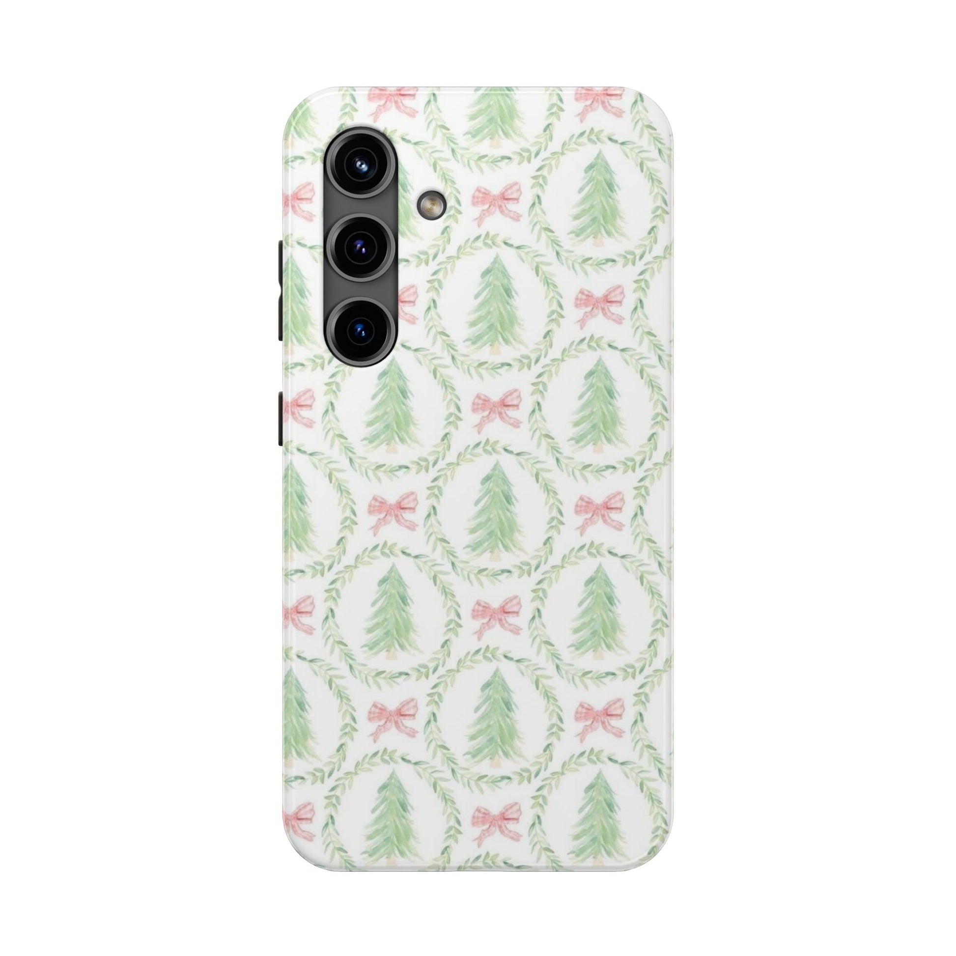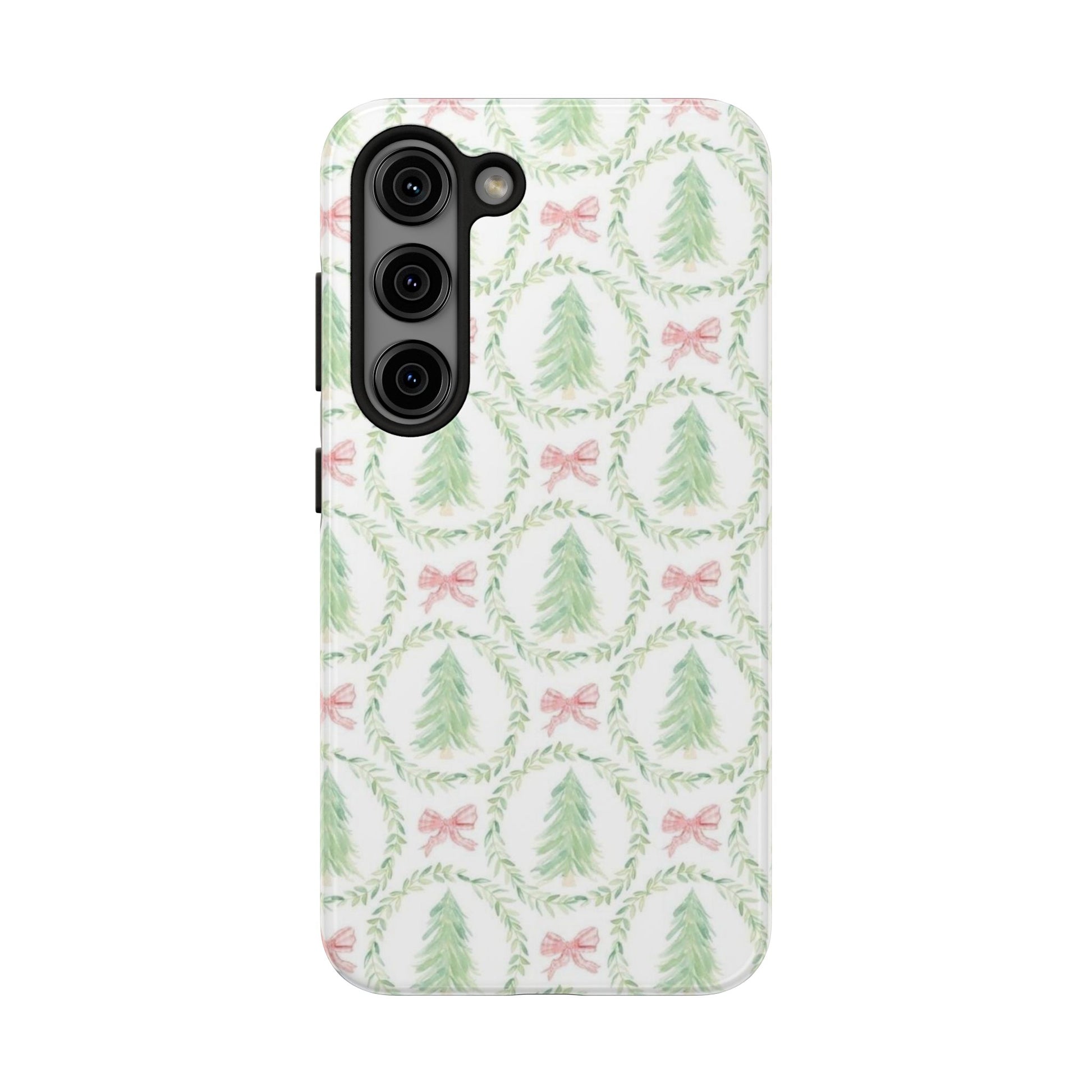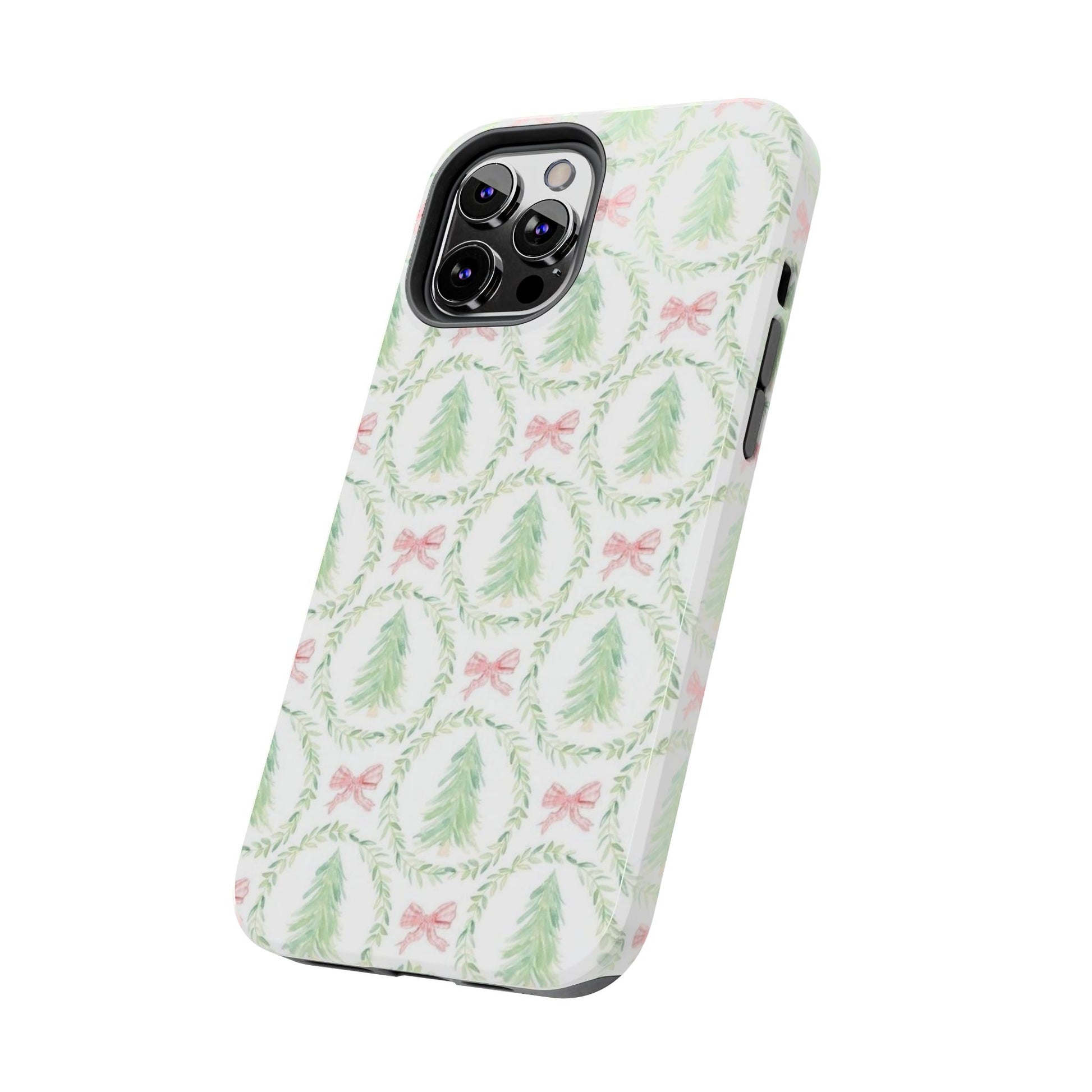 Christmas Wreath Phone Case — Pastel Pine Tree & Pink Bow Tough Case
