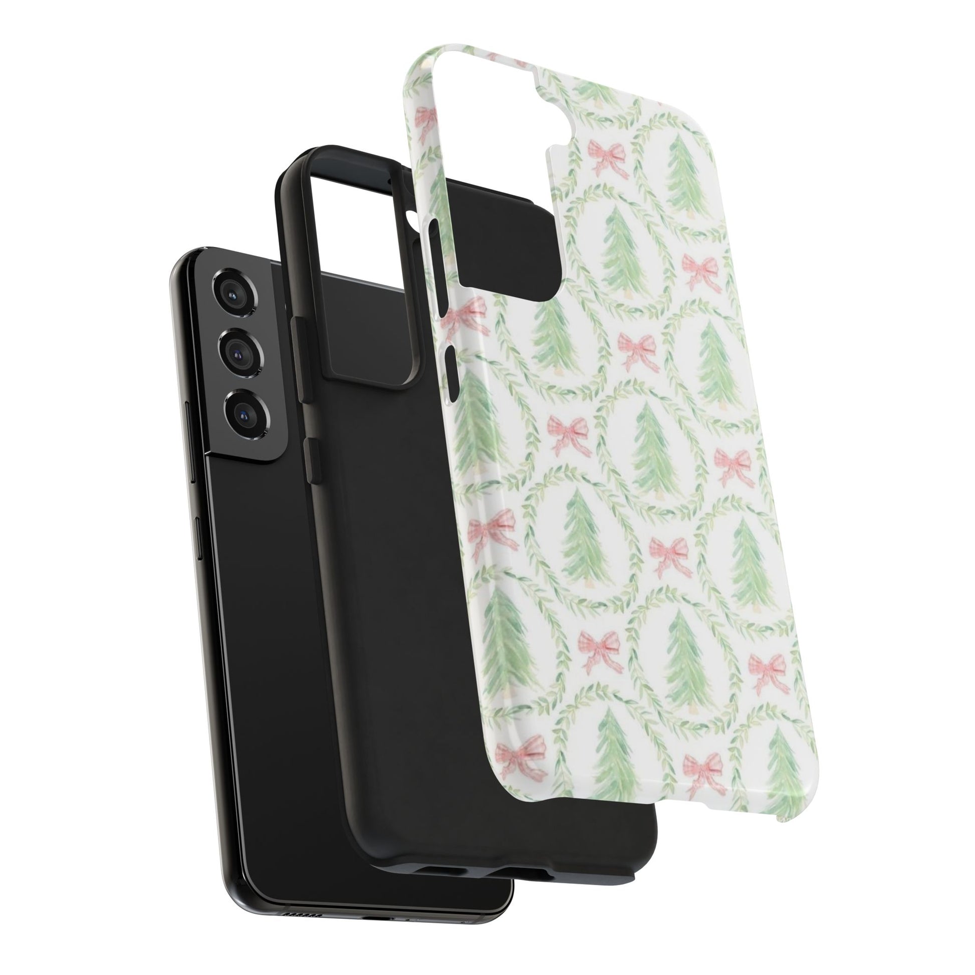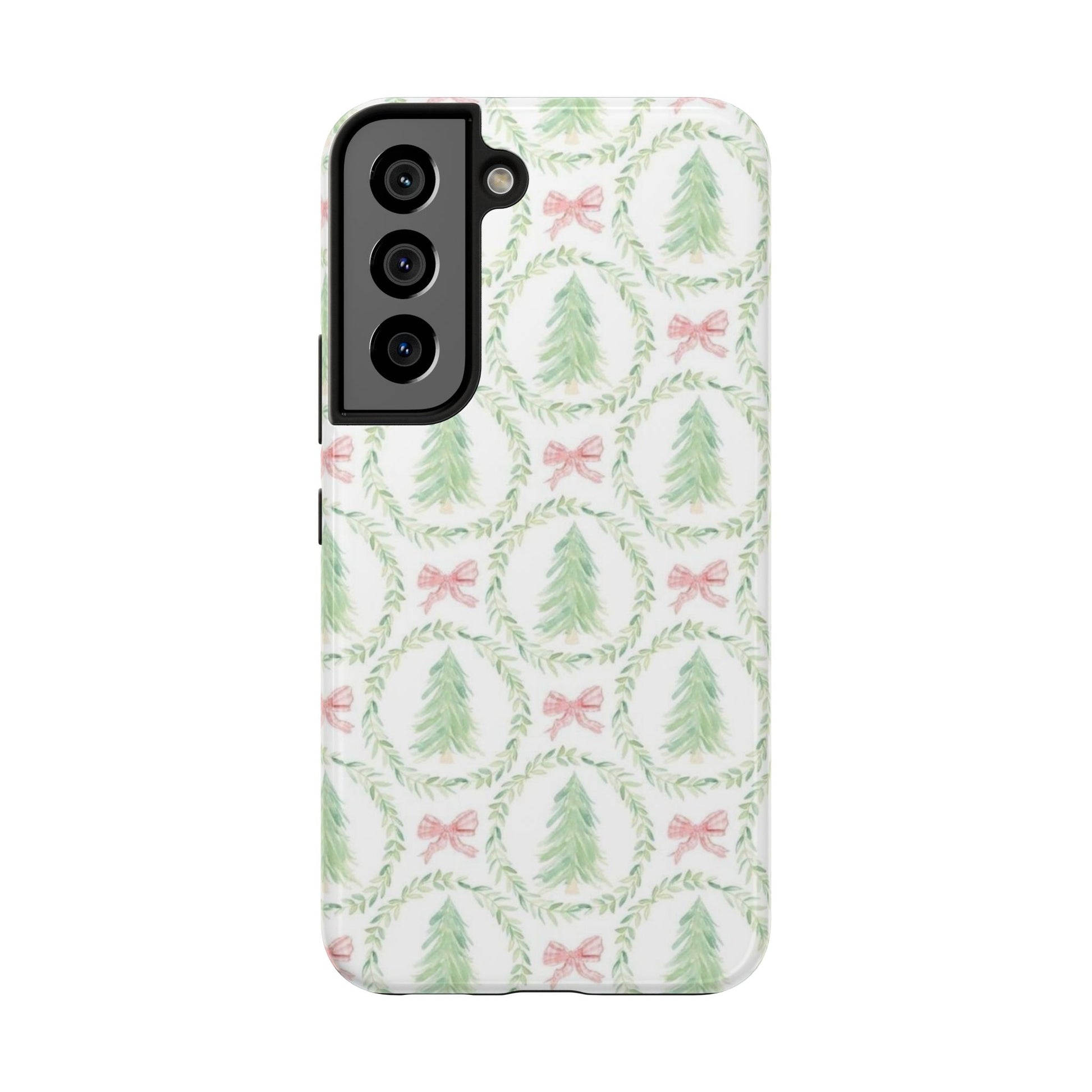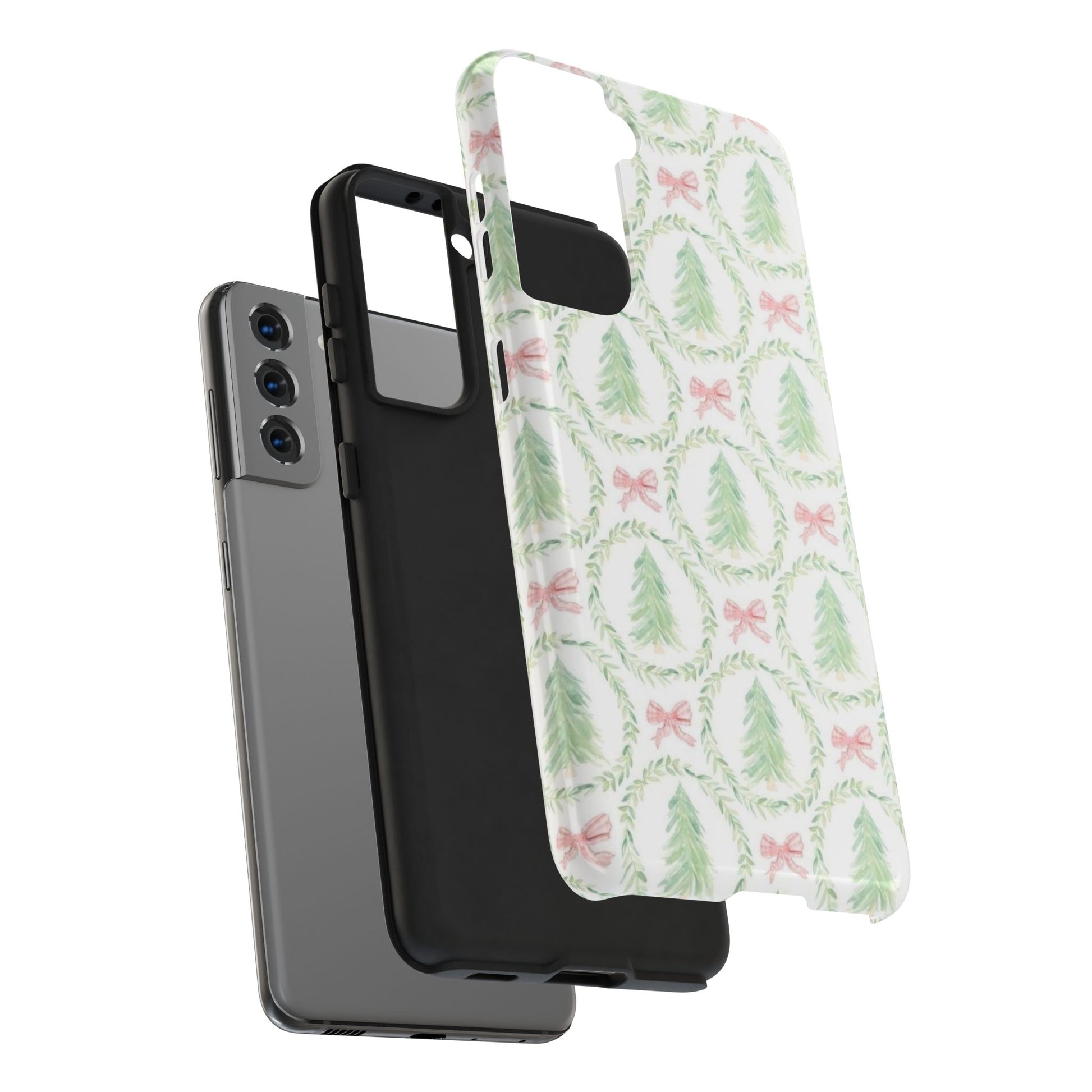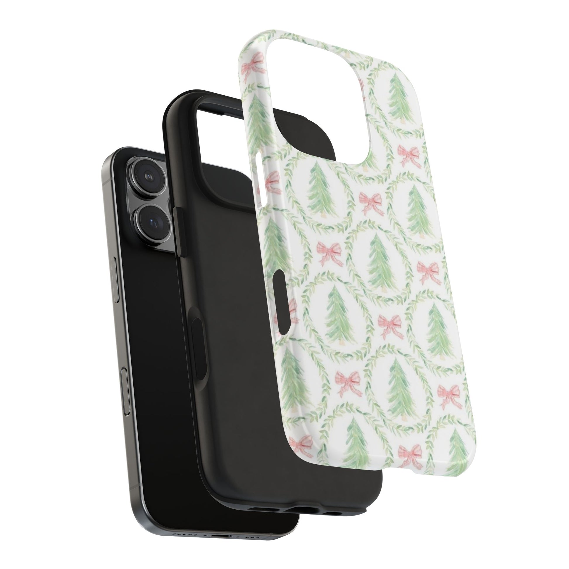 Christmas Wreath Phone Case — Pastel Pine Tree & Pink Bow Tough Case