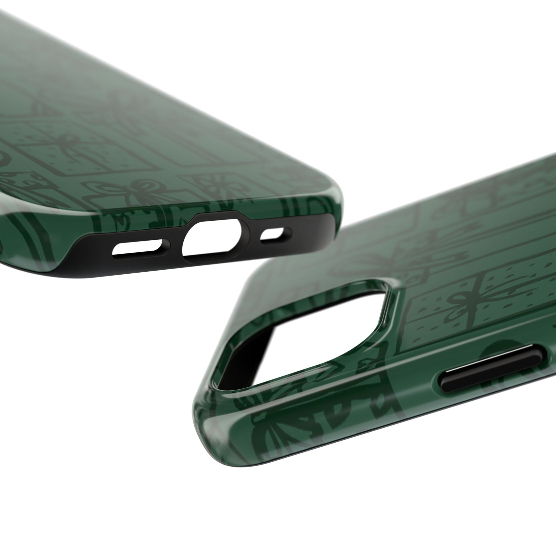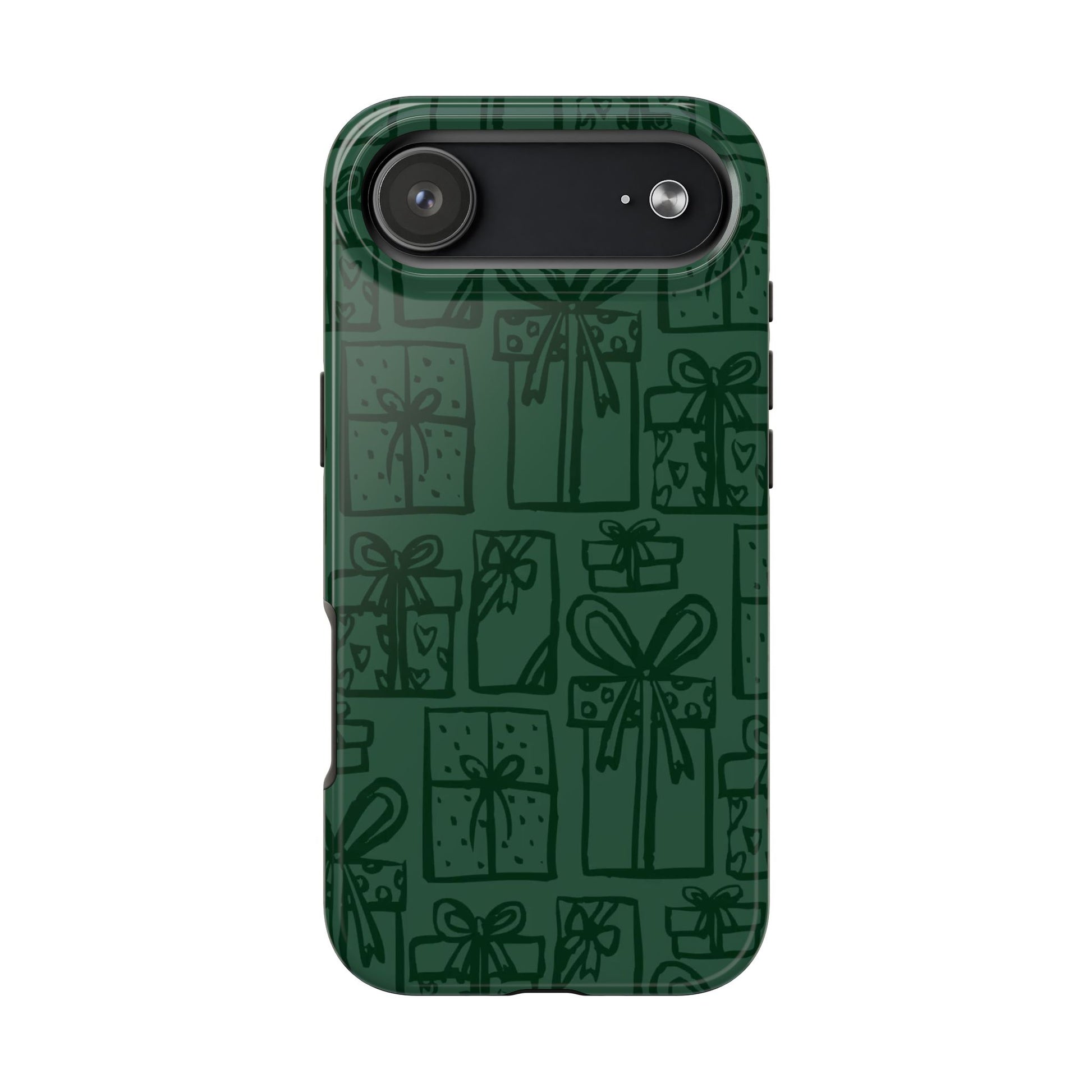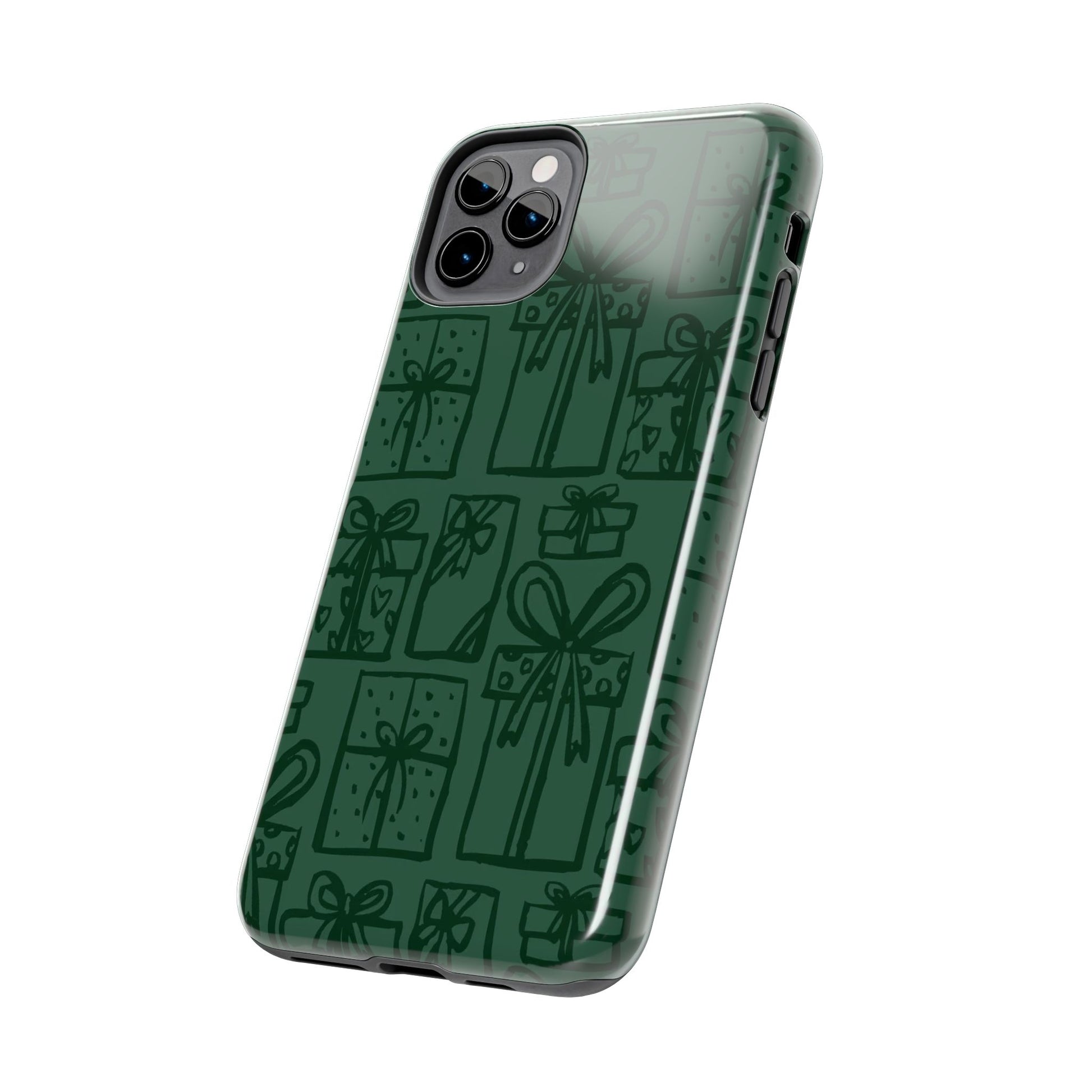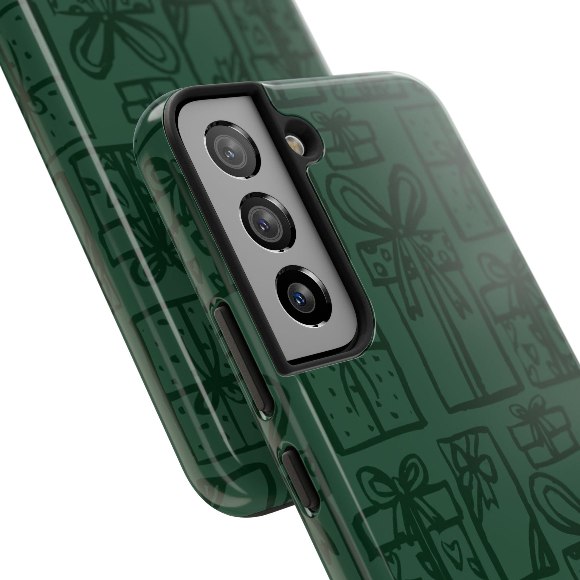 Holiday Gift Pattern Tough Phone Case — Dark Green Present Illustrations