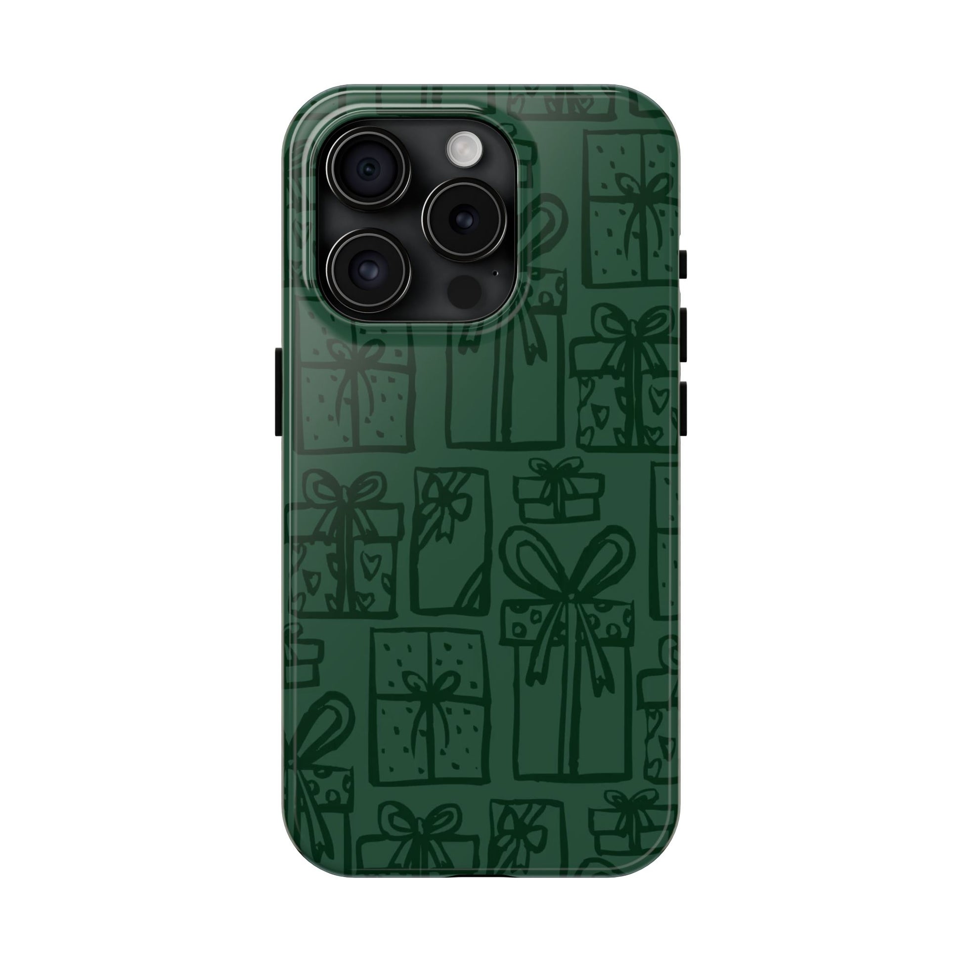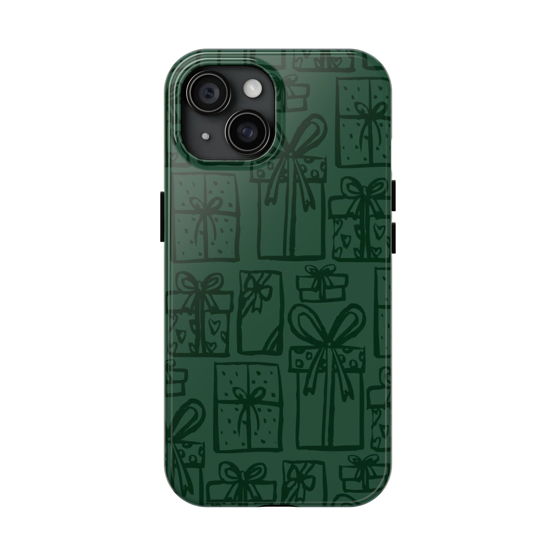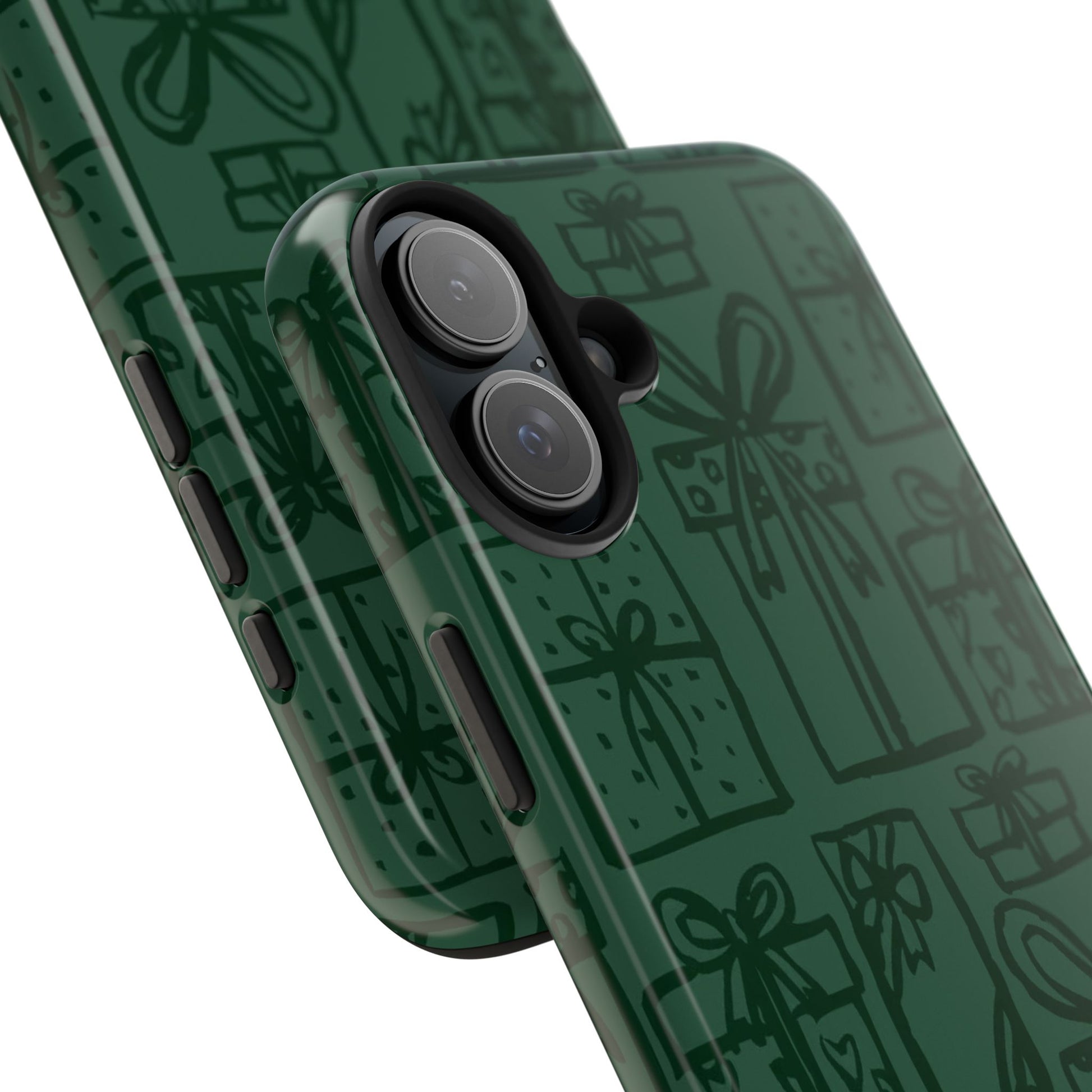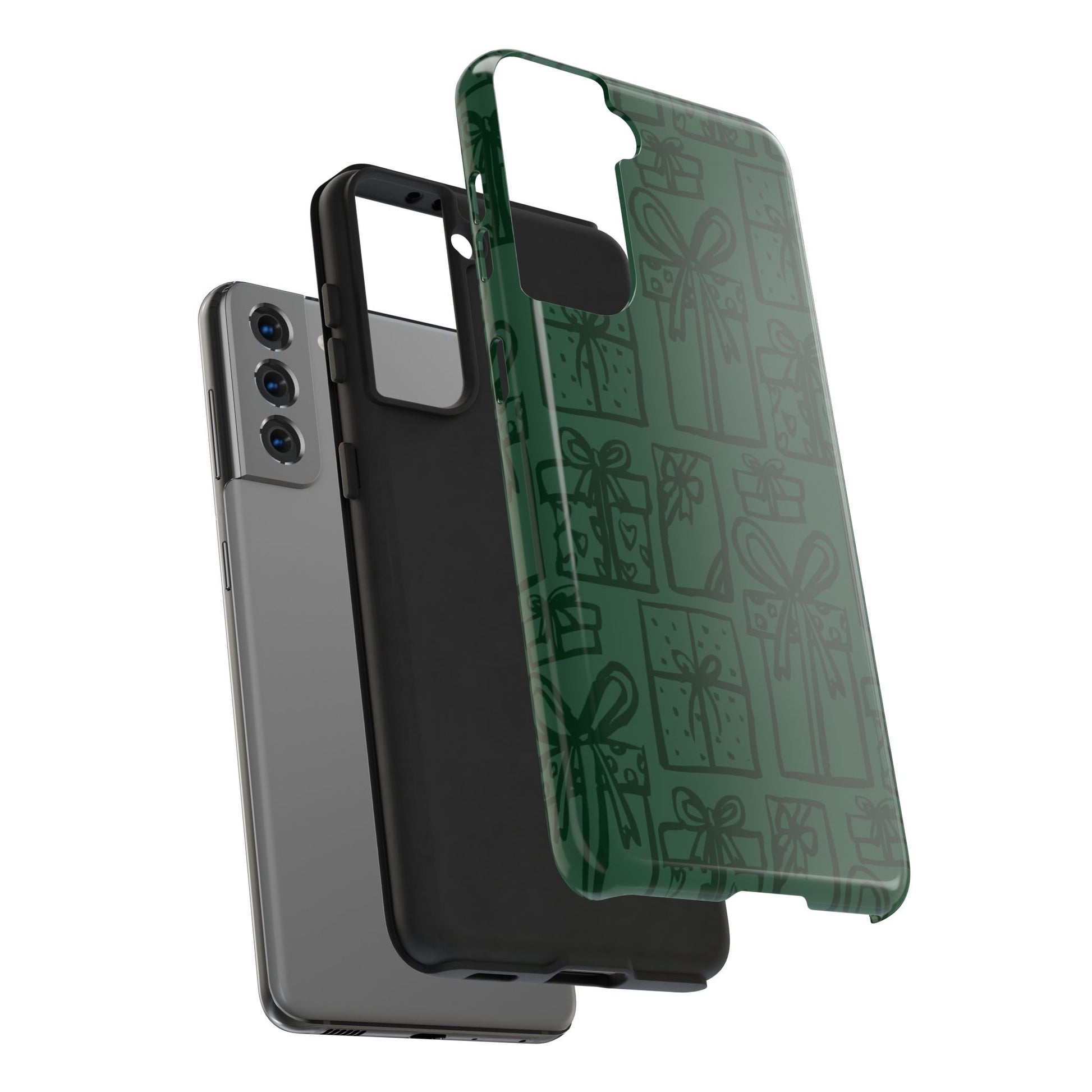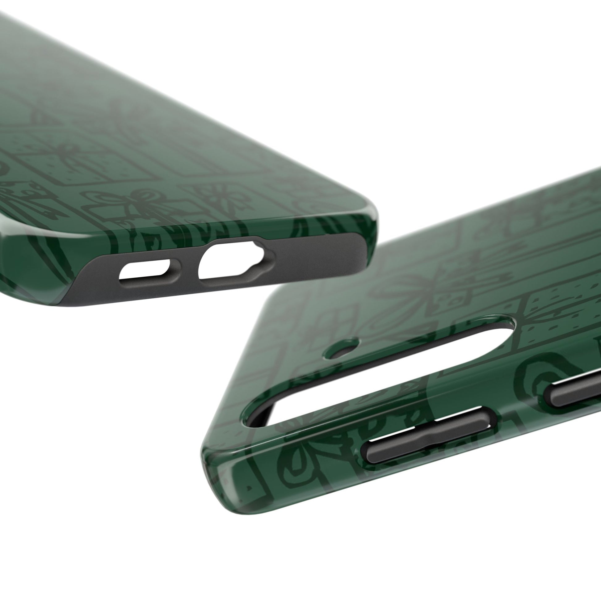 Holiday Gift Pattern Tough Phone Case — Dark Green Present Illustrations
