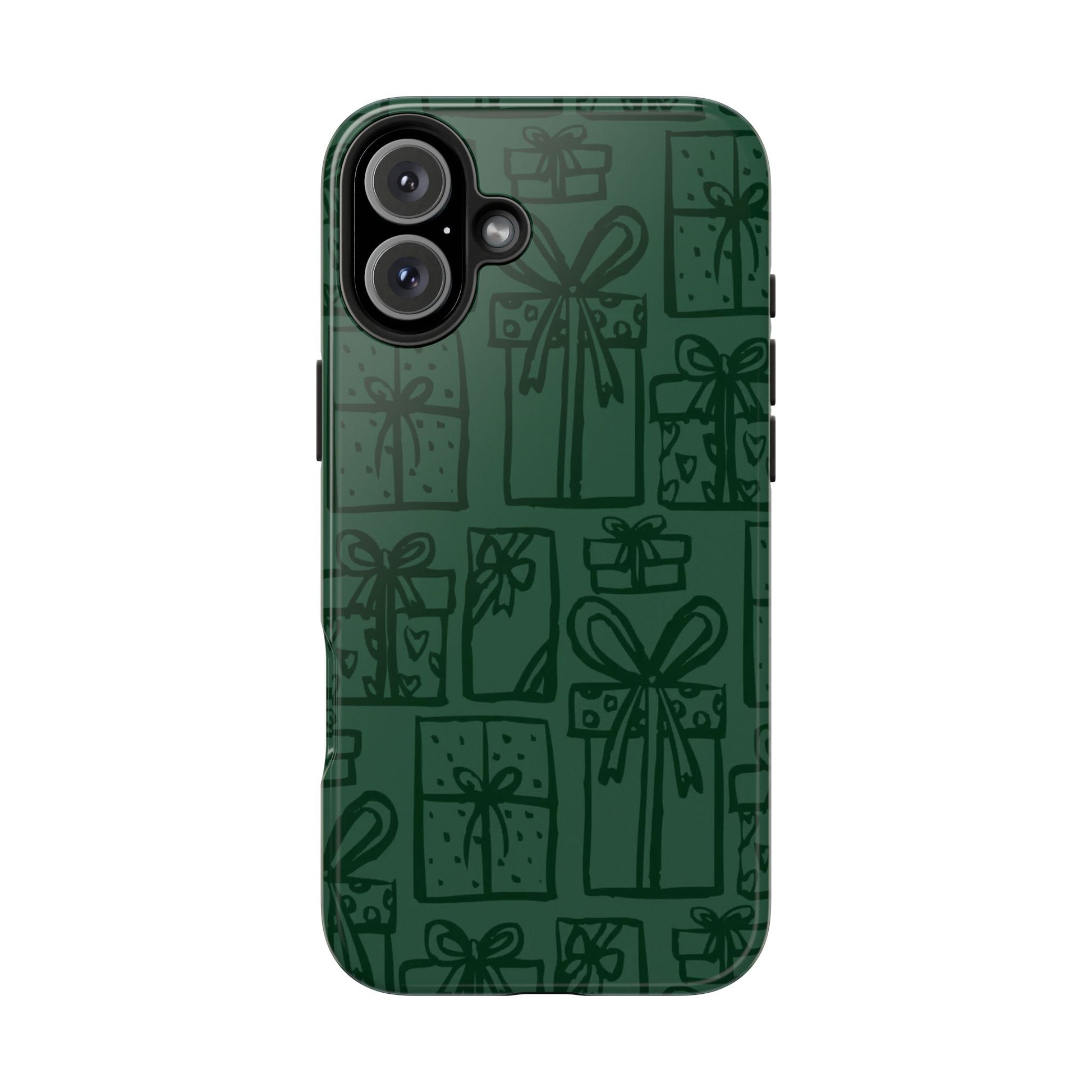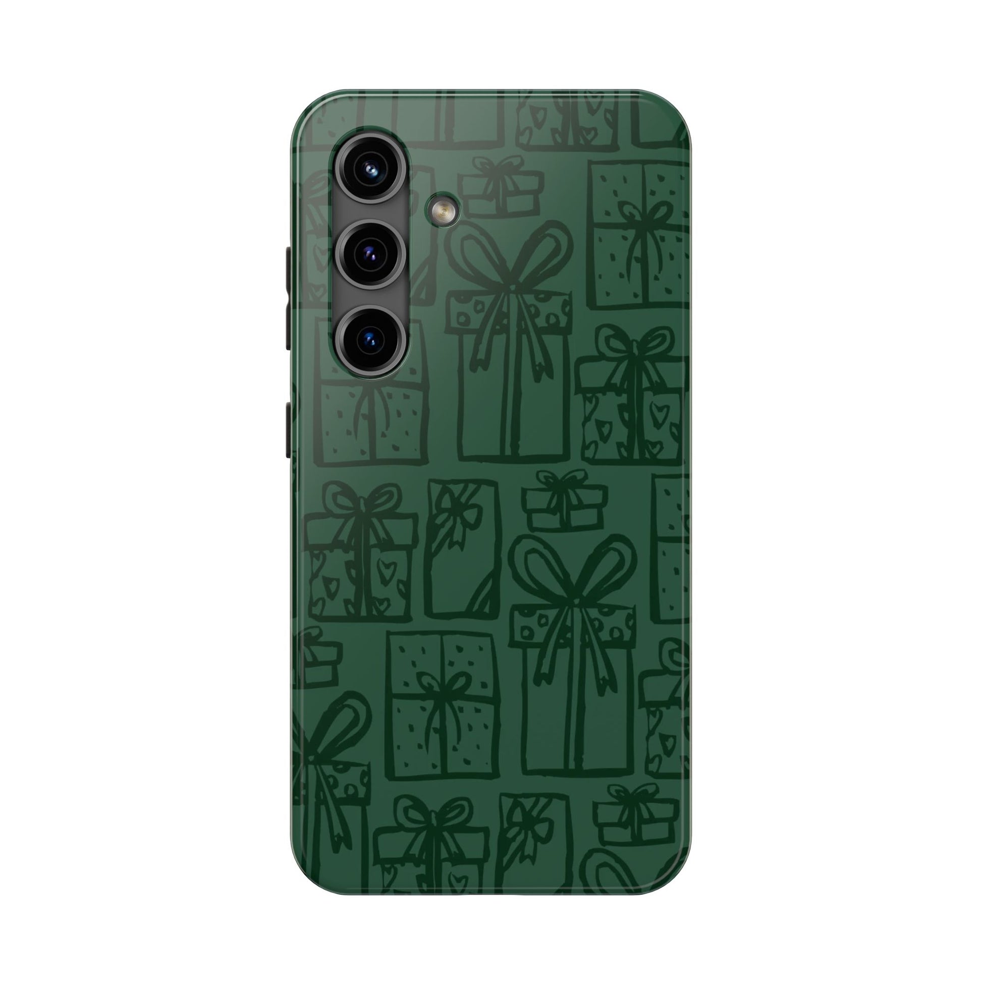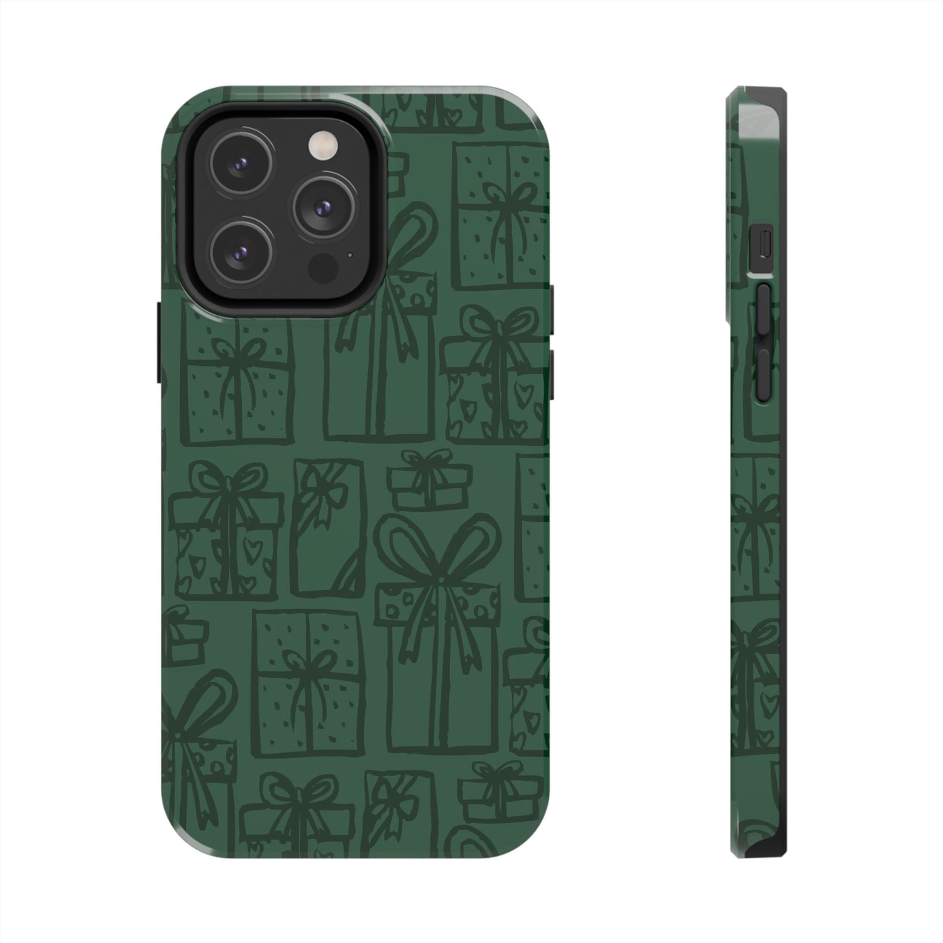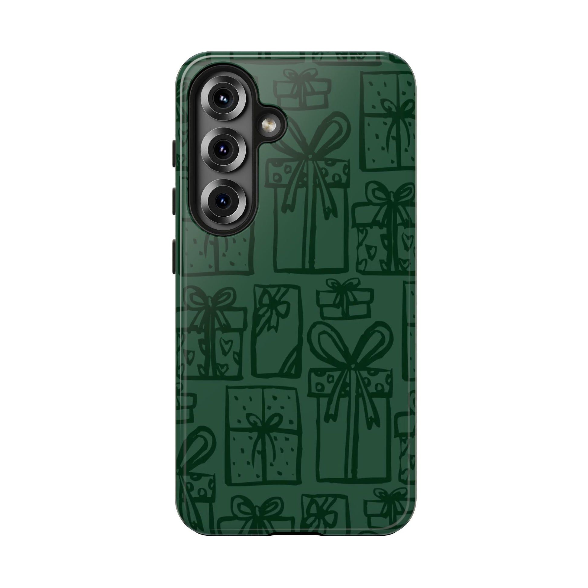 Holiday Gift Pattern Tough Phone Case — Dark Green Present Illustrations