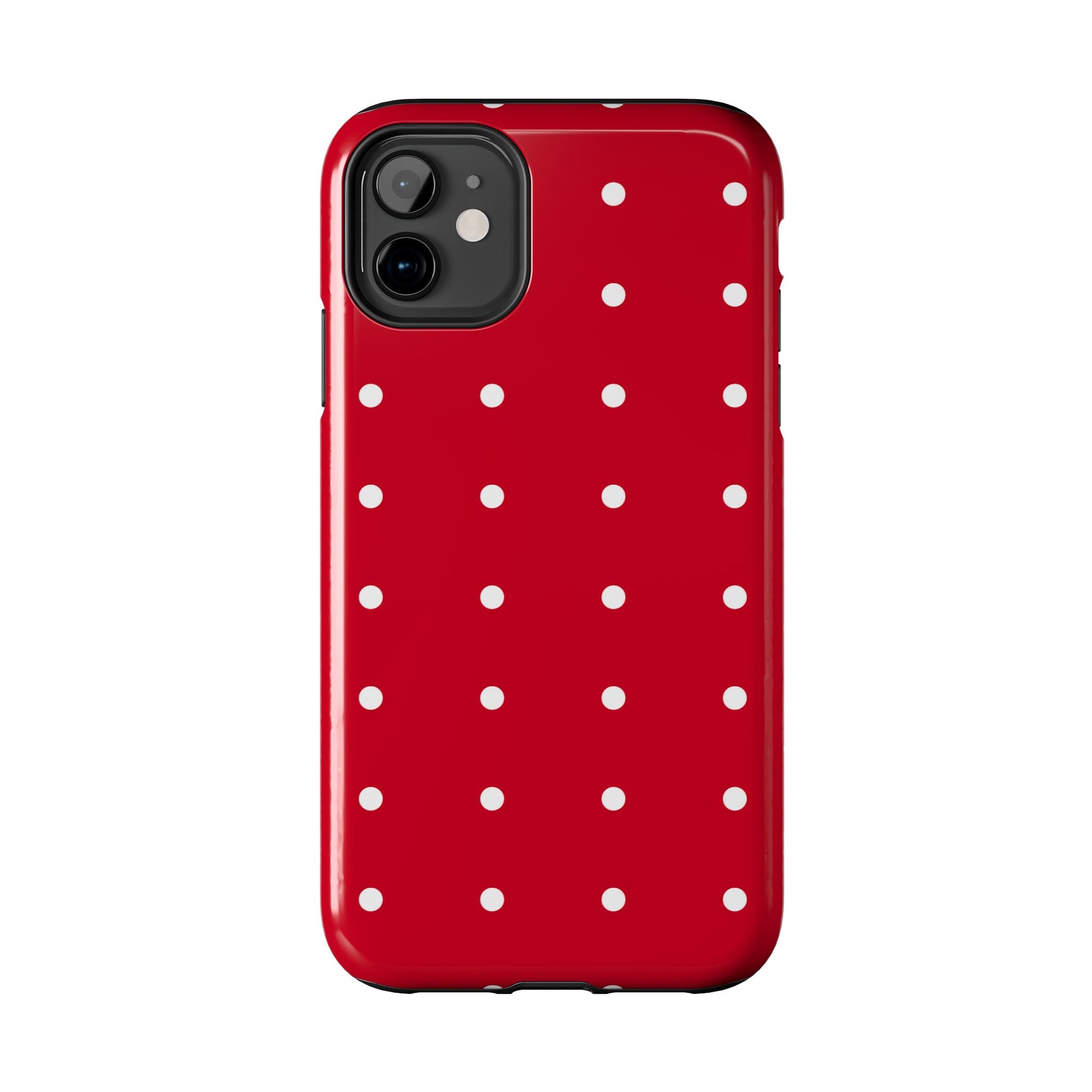Red Polka Dot Tough Phone Case — Durable Glossy Protective Phone Cover